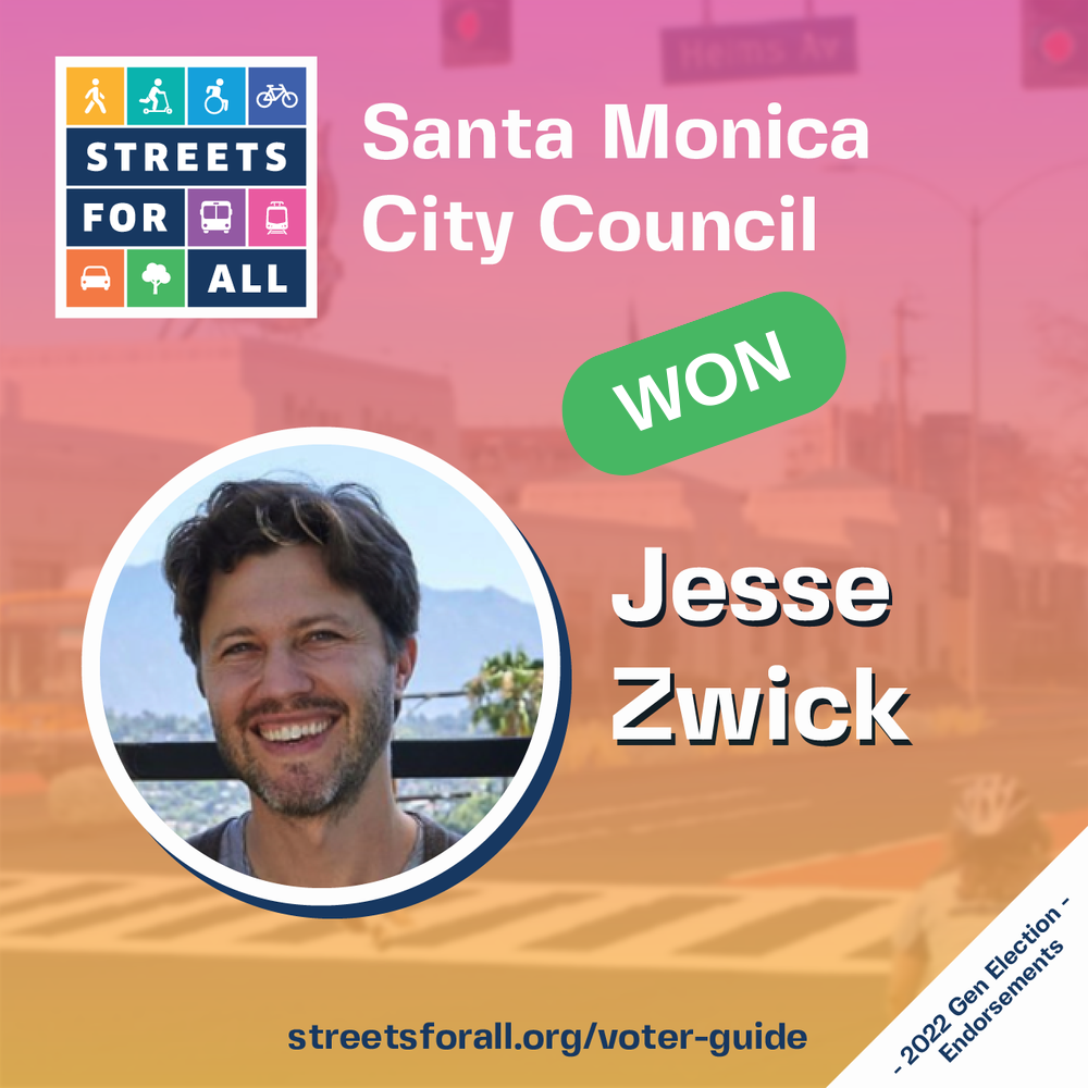 Jesse Zwick's forward-thinking ideas, including adding car-free streets to Santa Monica and ending the use of beg buttons, emphasize that transit is a key component of his platform. After a progressive backlash in the last election, Santa Monica has a chance at a progressive majority that can build on a transit movement that's also pro-housing.