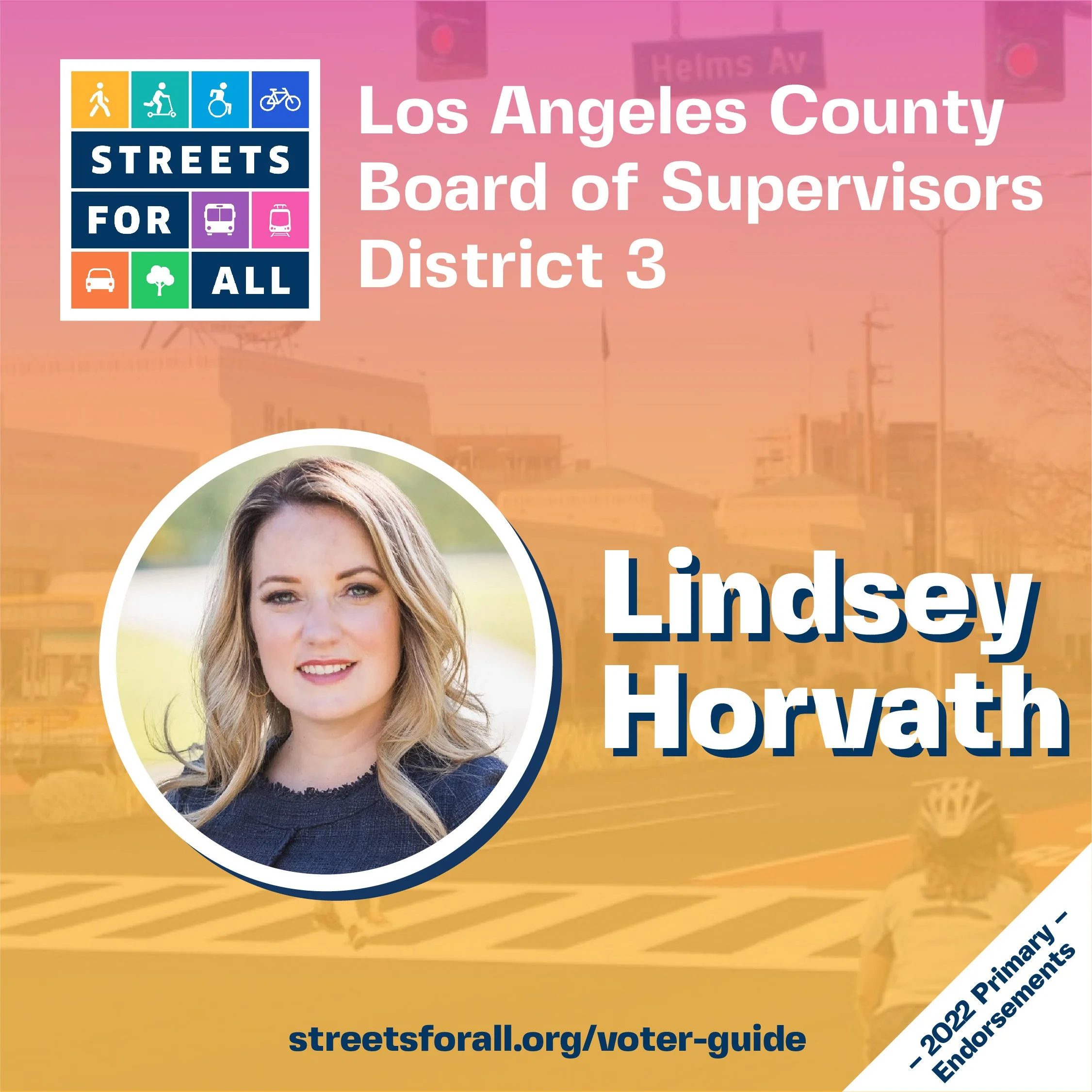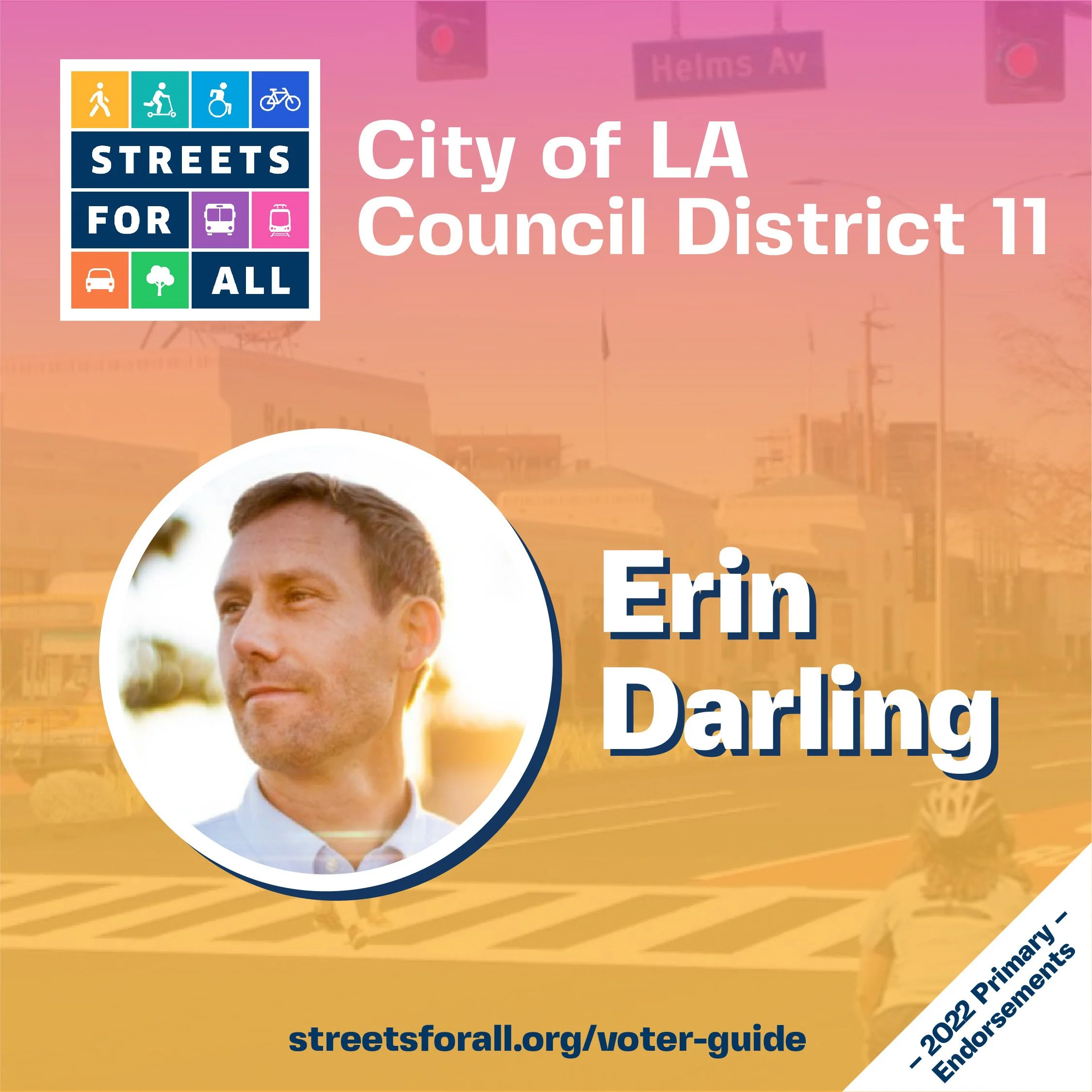 At Streets For All we believe the fastest path to safe and complete streets is electing people that support real change. Our endorsement decisions are based on both a candidate’s history of progressive action and a thoughtful response to our questionnaire.